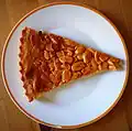 A type of pie without a pastry shell--instead the filling is directly topped with crumbled pastry |