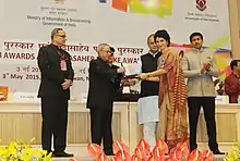 Pranab Mukherjee presenting the Rajat Kamal Award for Best Anthropological / Ethnographic Film on May 03, 2015