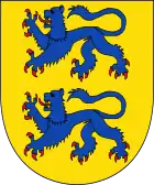 Welf VI, Welf VII: Heraldic lion in sandstone at Steingaden Abbey, presumably as funerary monument for Welf VI (d. 1191) and Welf VII (d. 1167), known as the oldest heraldic monument in Germany. The original monument consists of the lion on its own, the escutcheon outline was added in the later 13th century. The lion was originally colored blue. |