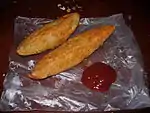 Indian subcontinent | A fast food of the Indian subcontinent made with wheat flour dough and potatoes as a main ingredient, sometimes with other vegetables. |