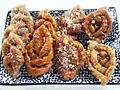 India | A dessert made with flour, soaked rice, and molten jaggery, fried with oil, and topped with sesame or poppy seeds. |