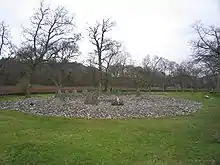 Boscawen-Un Stone circle with a leaning pillar in its interior.