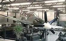 • Spitfire LF Mk.XVIe RR263. Built in 1944 and delivered to the RAF that year with 2nd Tactical Air Force. The Spitfire was loaned to Vickers Supermarine for experimental reasons in 1949 before moving to storage. Used as a static backdrop for the Reach for the Sky movie and later was on a plinth at RAF Kenley as TB597, codes GW-B. Later overhauled and repainted again as TB597 as GW-B before being put on display at Musée de l’air et de l’espace, Le Bourget.[56]
