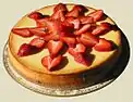New York-style cheesecakeNew York City, circa 1920s[13]The typical New York cheesecake is rich and has a dense, smooth and creamy consistency,[14] and relies upon heavy cream or sour cream and cream cheese. Sour cream makes the cheesecake more resilient to freezing and is the method by which most frozen cheesecakes are made. However, a lavish variant uses sour cream as a topping, applied when the cheesecake is cooked. It is mixed with vanilla extract and sugar and replaced in the oven, so that it is twice-baked.