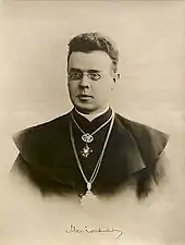 Vincas Mykolaitis-Putinas (1893–1967)[10] wrote lyric poetry, plays and novels, including the autobiographical novel Altorių šešėly (In the Shadows of the Altars, 3 vol., 1933), in which he described a priest doubting his vocation and eventually choosing a secular life. In 1935 Mykolaitis renounced his priesthood and became a professor of literature.