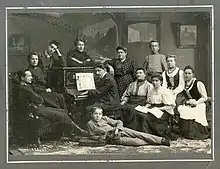 In 1896, Didžiulienė moved to Mitau (Jelgava) in the present-day Latvia so that her children could receive formal education.[7] There she established a dormitory for 12 to 14 Lithuanian students.[1] She not only rented rooms, but also taught proper manners and ensured students completed their schoolwork.[12] In fall 1896, several of her tenants, including Antanas Smetona, protested the requirement to pray in Russian at school.[13] The students were expelled and Didžiulienė was forced to downsize her dormitory – she could keep tenants only by claiming they were her relatives.[12] She obtained 500 rubles from Jonas Šliūpas for the expelled students and helped them find other schools. Eventually, she was able to reopen her dormitory.[12] During eleven years, her tenants included future President Antanas Smetona, Prime Minister Juozas Tūbelis,[14] writer Konstantinas Jasiukaitis, theater director Juozas Vaičkus, Minister of the Interior Vladas Požela, painter Justinas Vienožinskis, communist Vincas Mickevičius-Kapsukas (who later became her son-in-law).[15]