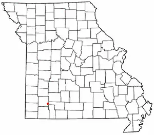 - ↑ "Lawrence County Place Names, 1928–1945 (archived)". The State Historical Society of Missouri. Archived from the original on June 24, 2016. Retrieved October 26, 2016.