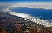 Long Beach's location directly east of the Palos Verdes Peninsula, paired with its south facing coastline, results in the city sometimes experiencing different weather patterns than the Los Angeles metropolitan area coastal communities to the northwest and southeast of Long Beach, which largely have west facing coastlines. The 1200 ft Palos Verdes hills block west to east airflow and a significant amount of the coastal moisture that marks other coastal cities, such as Manhattan Beach, Santa Monica, and Newport Beach.