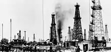 Oil was discovered in 1921 on Signal Hill, which split off as a separately incorporated city shortly afterward. The discovery of the Long Beach Oil Field, brought in by the gusher at the Alamitos oil well #1, made Long Beach a major oil producer; in the 1920s the field was the most productive in the world.[22] In 1932, the even larger Wilmington Oil Field, fourth-largest in the United States, and which is mostly in Long Beach, was developed, contributing to the city's fame in the 1930s as an oil town.[23][24]