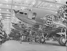 Douglas Aircraft Company's largest facility was its Long Beach plant, totaling 1,422,350 square feet (132,141 m2). The first plane rolled out the door on December 23, 1941. The plant produced C-47 Skytrain transports, B-17 Flying Fortress bombers, and A-20 Havoc attack bombers simultaneously. Douglas merged with the McDonnell Aircraft Company in 1967 where the Douglas DC-8 and the McDonnell Douglas DC-9 were built. In 1997 McDonnell Douglas merged with Boeing, which made C-17 Globemaster transport planes in Long Beach until the closure of the manufacturing facility in 2015.[30][31]