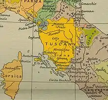 Napoleon's sister Elisa, though having now abandoned her Grand Duchy of Tuscany, had nevertheless not given up completely in attempting to salvage something out of the collapse of her brother's Empire. Having obtained from Murat - husband of her sister Caroline - the guarantee that he would obtain the consent of the Coalition he had just joined to her retention of the Principality of Lucca and Piombino in return for having rendered up Tuscany without a fight, she had, by the time of Bentinck's appearance at Livorno, retired to Lucca. Upon hearing of his landing, she sent a delegation to gain assurances that Murat's pact would be respected. Bentinck replied that it would not. If she did not depart immediately, he said, she would be arrested. With 2,000 British troops dispatched towards the city to carry out this threat, the heavily pregnant Elisa had no choice but to abandon the last of her territories and flee north, where she eventually fell into allied hands at Bologna.[27]