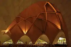 The architect of the Lotus Temple was an Iranian, Fariborz Sahba who now lives in La Jolla, California,[6] after spending some years in Canada.[7] He was approached in 1976 to design the Lotus Temple and later oversaw its construction. The structural design was undertaken by the UK firm Flint and Neill over the course of 18 months,[8] and the construction was done by ECC Construction Group of Larsen & Toubro Limited[9] at a cost of $10.56 million.[10][11] The major part of the funds needed to buy this land was donated by Ardishír Rustampúr of Hyderabad, Sindh (Pakistan), whose will dictated that his entire life savings would go toward the building of the temple.[12] A portion of the construction budget was saved and used to build a greenhouse to study indigenous plants and flowers that would be appropriate for use on the site.[13]