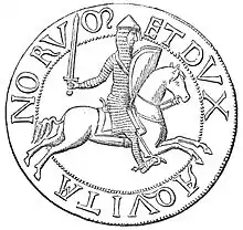 Equestrian image of Louis VII on two-sided royal seal. Legend: ET DVX AQVITANORVM.