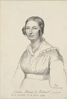 ![]() Portrait of Louise-Joséphine Sarazin de Belmont, drawn by Carl Christian Vogel von Vogelstein, Rome, 24 June 1843 (Kupferstich-Kabinett, Dresden) | |