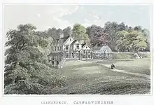 His other brother, Capt. Thomas Parry Jones-Parry, married the daughter of Vice-Admiral Robert Lloyd, and became Magistrate, Deputy Lieutenant, and High Sheriff of Caernarvonshire.[4] Thomas was also the proprietor of the Llwyn Onn estate, which was in their family since at least the 15th century, and the Aberdunant estate.[18] Aberdunant will be inherited by his grandson, Thomas Edward John Lloyd, who will also inherit the property of his great-grandfather, Vice Admiral Robert Lloyd, which included the Tregayan estate in Anglesey and the Gesail Gyfarch estate in Caernarfonshire.[19]