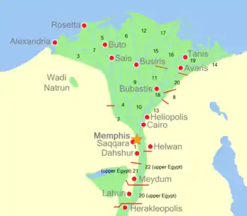 | 1 | Inebu-hedj | Ineb Hedj / Men-nefer / Menfe (Memphis) | Mit Rahina | White Walls | Ptah |