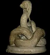 Lucian's treatise Alexander the False Prophet describes the rise of Alexander of Abonoteichus, a charlatan who claimed to be the prophet of the serpent-god Glycon.[15] Though the account is satirical in tone,[107] it seems to be a largely accurate report of the Glycon cult[107] and many of Lucian's statements about the cult have been confirmed through archaeological evidence, including coins, statues, and inscriptions.[107] Lucian describes his own meeting with Alexander in which he posed as a friendly philosopher,[107] but, when Alexander invited him to kiss his hand, Lucian bit it instead.[107] Lucian reports that, aside from himself, the only others who dared challenge Alexander's reputation as a true prophet were the Epicureans (whom he lauds as heroes) and the Christians.[107]