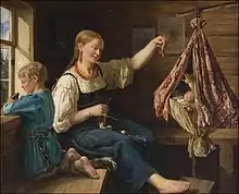 Lullabies are often used to pass down or strengthen the cultural roles and practices. In an observation of the setting of lullabies in Albanian culture, lullabies tended to be paired with the rocking of the child in a cradle. This is reflected in the swinging rhythmicity of the music. In addition to serving as a cultural symbol of the infant's familial status, the cradle's presence during the singing of lullabies helps the infant associate lullabies with falling asleep and waking up.[20] Kogan and Gintsburg, in a study of the mainly preliterate, non-media-exposed people on the island of Soqotra, found that lullabies in this culture shared many of the features of lullabies in the western and oriental tradition: the repetition of 'nonsense syllables', the creation of a warm affective space, and the allusions to ancient customs and beliefs. On the other hand, these lullabies lacked the 'counting elements' found in other traditions, and defined safety as a spiritual space, while danger was conceptualised as both physical and spiritual.[21]