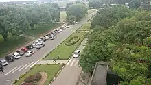Under Adshead's original plans, Lusaka was proposed as a pure administrative centre, with no industry or large African population; he commented at one point that it "could never become an important city".[13][40] Under Bowling's revised plans, there were areas designated for both light and heavy industry, as well as a business area.[13][41] He gave prominence to the airport, as well as to the government house, albeit under a simpler design than that envisaged by Storrs. Both men had built racial segregation into their plans, dividing the city into "native" and "non-native" areas, with residential areas and services for Africans placed on the southern periphery of the city. Despite producing these plans, both Adshead and Bowling had left Rhodesia before the Lusaka week, and the remainder of the building was left to Dutton and a small team of white officials.[41] The city's footprint covered a large area, even at this early stage, despite much of it being undeveloped. This was part of a policy devised by Adshead intended to allow internal expansion, rather than the usual central core with suburbs added outside.[42][43]