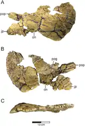Machairoceratops (meaning "bent sword horned face"), previously known as the "Wahweap centrosaurine B", is an extinct genus of centrosaurine ceratopsian dinosaur known from the Late Cretaceous Wahweap Formation (late Campanian stage) of Grand Staircase–Escalante National Monument, southern Utah, United States.[1]