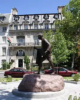 The Mahatma Gandhi Memorial is a public statue of Mahatma Gandhi, installed on a triangular island along Massachusetts Avenue, in front of the Embassy of India, Washington, D.C., in the United States.[1] A gift from the Indian Council for Cultural Relations, it was dedicated on September 16, 2000 during a state visit of Indian Prime Minister Atal Bihari Vajpayee in the presence of US President Bill Clinton.