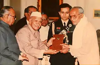 Ma Su Krishnamurthy being awarded the Tamra Patra by President Shankar Dayal Sharma