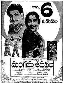 - ↑ "మంగమ్మ శపథం" [Mangamma Sapatham]. Andhra Jyothi (in Telugu). 12 March 1965. Retrieved 6 September 2020.