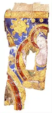 Some Sogdians in Central Asia believed in the religion.[58][59] Uyghur khagan Boku Tekin (759–780) converted to the religion in 763 after a three-day discussion with its preachers,[60][61] the Babylonian headquarters sent high rank clerics to Uyghur, and Manichaeism remained the state religion for about a century before the collapse of the Uyghur Khaganate in 840.