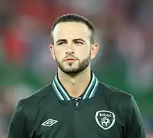 Wilson later represented the Republic of Ireland at various youth levels including under-18,[60] under-19 [61] and under-21.[62] Wilson received his first call up for the international side for a friendly against Brazil in March 2010, but did not feature in the game.[63][64] He earned his first cap for the Republic as a second-half substitute in the 2011 Nations Cup against Wales in February 2011.[65] In January 2012 new Northern Ireland manager Michael O'Neill offered Wilson a chance to switch allegiances again but Wilson rejected his offer.[66][67] On 16 October 2012, he scored his first international goal in a 2014 FIFA World Cup qualifying match in a 4–1 away win against the Faroe Islands with an impressive 25-yard shot with his right foot. He continued at left back throughout the 2014 World Cup qualifying campaign but Ireland failed to qualify.[68]