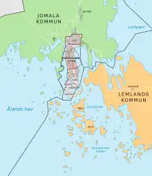 Mariehamn (/məˈriːəhɑːmən/ mə-REE-ə-hah-mən,[6] Finland Swedish: [mɑriːeˈhɑmn] ⓘ; Finnish: Maarianhamina [ˈmɑːriɑnˌhɑminɑ]; Latin: Portus Mariae) is the capital of Åland, an autonomous territory under Finnish sovereignty. Mariehamn is the seat of the Government and Parliament of Åland, and 40% of the population of Åland live in the city. It is mostly surrounded by Jomala, the second largest municipality in Åland in terms of population; to the east it is bordered by Lemland. Like all of Åland, Mariehamn is unilingually Swedish-speaking and around 82% of the inhabitants speak it as their native language.[4]