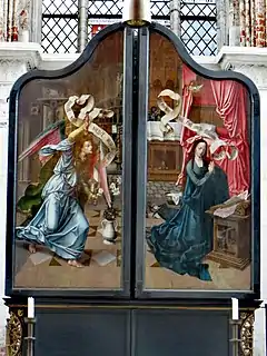 • The fully closed position (nowadays, this is the position in the Christian Holy Week before Easter Sunday), shows the Annunciation by the Master of 1518.