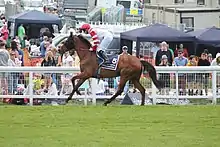 It would not be until 2013 that Lane scored another notable big race win, this time with the Tattersalls Millions 2YO Fillies' Trophy at Newmarket, riding Wedding Ring in the colours of Godolphin.[5] In 2014, with Simcock, Lane would team up with Sheikhzayedroad and owned Mohammed Jaber. Scoring notable wins during the 2014 season including the Fred Archer Stakes and York Stakes before heading to Canada and taking victory in the 2014 Grade I Northern Dancer Turf Stakes at Woodbine.[6][7][8][9]