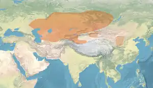 The Massagetae or Massageteans, also known as Sakā tigraxaudā or Orthocorybantians were an ancient Eastern Iranian Saka people[1][2][3][4][5] who inhabited the steppes of Central Asia and were part of the wider Scythian cultures.[6] The Massagetae rose to power in the 8th to 7th centuries BCE, when they started a series of events with wide-reaching consequences by expelling the Scythians out of Central Asia and into the Caucasian and Pontic Steppes. The Massagetae are most famous for their queen Tomyris's alleged defeating and killing of Cyrus, the founder of the Persian Achaemenid Empire.[7]