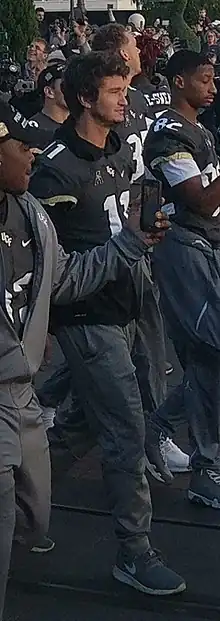 Wright, wearing his 11 jersey, walking in the 2018 UCF Parade at the Magic Kingdom, following their Peach Bowl & National Championship season