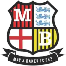The club originally played on a pitch behind the May & Baker factory, with spectator facilities consisting of seats in a covered veranda built into the clubhouse. The pitch was requisitioned for use by the factory in the 1970s. The club moved to the M&B Sports and Social Club, a large sports ground site including a railed-off pitch and pavilion.[5] In order to move up to the Eastern Counties League, the club relocated to Barking RFC's Gale Street ground.[6] Prior to the 2019–20 season, May & Baker entered a groundsharing agreement at Aveley’s Parkside ground.[7]