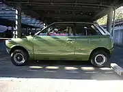 The Mazda Chantez (chassis code KMAA) is a two-door kei car that was introduced by Mazda in July 1972. The Chantez had a longer wheelbase at 2,200 mm (86.6 in) than most of its competitors and featured the powerful two-stroke "AA" engine also seen in the Porter. With 35 PS (26 kW; 35 bhp), top speed was 115 km/h (71 mph) and the 400 m (0.2 mi) sprint was dispatched in a sprightly 20.6 seconds.[1] In more recent testing (early 2000s) of a 1972 GF II, 0–100 km/h came up in 35.8 seconds.[2] The engine was installed longitudinally in the front of the vehicle powering the rear wheels, and the spare tire was installed next to the engine on the right side.[3][4]