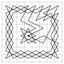 Another part of the machine's exhibition was the completion of the knight's tour, a famed chess puzzle. The puzzle requires the player to move a knight around a chessboard, touching each square once along the way. While most experienced chess players of the time still struggled with the puzzle, the Turk was capable of completing the tour without any difficulty from any starting point via a pegboard used by the operator with a mapping of the puzzle laid out.[22]