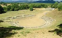 The city was founded through a synodical of twenty to forty neighbouring communities between 371 and 368 BC by the Arcadian League in an attempt to form a political counterweight to Sparta. Megalopolis was a member of the Arcadian League after its foundation until the dissolution of the federation in 362 BC. In 353 BC, when Thebes had her hands full with the so-called Sacred War, the Spartans made an attempt to reduce Megalopolis; but the Thebans sent assistance and the city was rescued.[4] In 331 BC, Megalopolis was invaded by the Spartans and there was a battle with the Macedonians that came to Megalopolis' help. In 317 BC at the start of the Second War of the Diadochi, Polyperchon, the new Regent of the Macedonian Empire, besieged Megalopolis which had sided with his enemy Cassander.[5] The siege failed.[5]