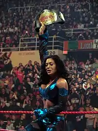 Perez is a three-time WWE Women's Champion,[14][15] and a two-time WWE Divas Champion.[16][17] After winning her second WWE Divas Championship, Perez became the first woman in WWE history to become a multiple-time champion with both the Women's and Divas titles.[18]