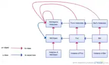 Diagram of the inheritance and instance relationships between classes and metaclasses in Objective-C. Note that Objective-C has multiple root classes; each root class would have a separate hierarchy. This diagram only shows the hierarchy for an example root class NSObject. Each other root class would have a similar hierarchy.