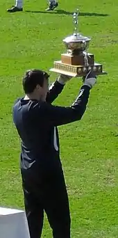 Ingham lifting the Billy Fenton Memorial Trophy after being named as York City's Clubman of the Year for the 2009–10 season