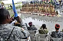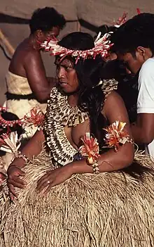 The Marshallese people (Marshallese: kajoor ri-Ṃajeḷ , laḷ ri-Ṃajeḷ) are the indigenous inhabitants of the Marshall Islands. They numbered 70,000 as of 2013.[29] Marshallese society was organized into three social classes, the iroji was the chief or landowner that headed several clans, the alap managed the clan and the rijerbal (worker) were commoners that worked the land. The three social classes treated each other well and with mutual respect.[26]