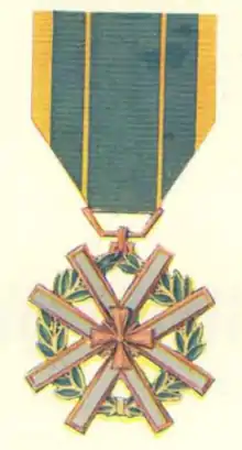 The Military Service Medal (Vietnamese: Quân-Vụ Bội-Tinh) was a military decoration of South Vietnam. Established in 1964, the medal recognized the completion of a prescribed service time, the displayment of good conduct, and the high working spirit in service.[1]