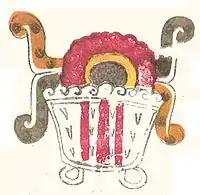 A burning mirror in a brazier as depicted on page 63 of the Codex Borgia.[76]