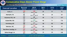 - ↑ "Mississippi River Flood History 1543-Present". New Orleans/Baton Rouge Weather Forecast Office. NOAA; National Weather Service. Retrieved 11 August 2019.