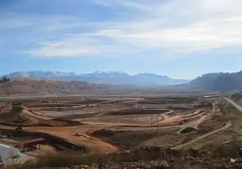 As of September 2019, 10 million tons of tailing (62%) have been removed.[9] A well field is located between the tailing pile and the river, which extracts and purifies groundwater before it enters the Colorado river. As of February 2014 799,000 pounds (362,000 kg) of ammonia and 3,990 pounds (1,810 kg) of uranium have been extracted from the wells. During low water periods, fresh water is injected into the wells.[10] On July 29, 2014 the 7 millionth ton of tailing was placed in the disposal cell.[11]