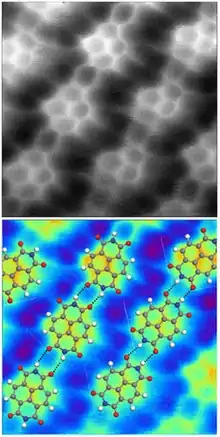 - ↑ Sweetman, A. M.; Jarvis, S. P.; Sang, Hongqian; Lekkas, I.; Rahe, P.; Wang, Yu; Wang, Jianbo; Champness, N.R.; Kantorovich, L.; Moriarty, P. (2014). "Mapping the force field of a hydrogen-bonded assembly". Nature Communications. 5: 3931. Bibcode:2014NatCo...5.3931S. doi:10.1038/ncomms4931. PMC 4050271. PMID 24875276.