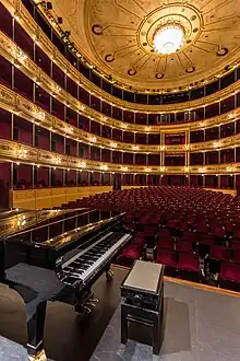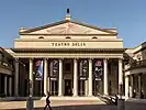 After the end of hostilities, a period of growth and expansion started for the city. In 1853 a stagecoach bus line was established joining Montevideo with the newly formed settlement of Unión and the first natural gas street lights were inaugurated. From 1854 to 1861 the first public sanitation facilities were constructed. In 1856 the Teatro Solís was inaugurated, 15 years after the beginning of its construction. By Decree, in December 1861 the areas of Aguada and Cordón were incorporated to the growing Ciudad Nueva (New City).[42] In 1866, an underwater telegraph line connected the city with Buenos Aires. The statue of Peace, La Paz, was erected on a column in Plaza Cagancha and the building of the Postal Service as well as the bridge of Paso Molino were inaugurated in 1867.[43]
