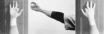Mordecai Peter Centennial Brown (October 19, 1876 – February 14, 1948), nicknamed "Three Finger Brown" or "Miner", was an American Major League Baseball pitcher and manager during the first two decades of the 20th century (known as the "dead-ball era"). Due to a farm-machinery accident in his youth (April 17, 1888), Brown lost parts of two fingers on his right hand,[1] and in the process gained a colorful nickname. He turned this handicap into an advantage by learning how to grip a baseball in a way that resulted in an exceptional curveball (or knuckle curve), which broke radically before reaching the plate. With this technique he became one of the elite pitchers of his era.