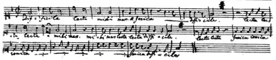 Reproduction of the original manuscript of Mozart's canon "Difficile lectu". The words "lectu mihi mars" were intended to be heard as "Leck du mich im Arsch" ("lick my arse"), a phrase commonly used in Mozart's family circle.[1]